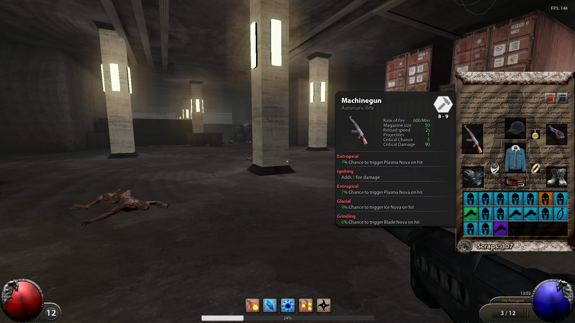 Another example is that I don't have money as a currency in the game, as there aren't any vendors you could purchase from. In most other games they only serve as a point to sell your loot and offer nothing remotely interesting to buy anyway, so I thought i could use Hellgate's item dismantling system in a way where there is only one type of material (scraps) and use that as a resource for crafting/augmenting your items. Combined with the auto-dismantler feature which is available right from start, this system suddenly makes every dropped item valuable as they'll produce this material upon dismantling.